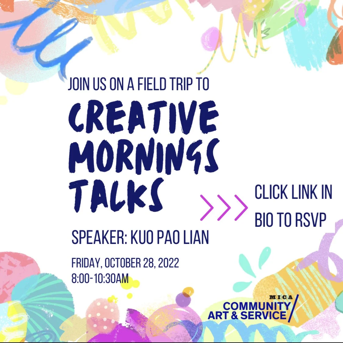 Instagram posts advertising the Creative Morning Talks to MICA students on Instagram. I am the one who added the text and photos, while Elli Hernandez, artist and one of the heads of MICA’s Community Arts and Services did the layout design. Elli also wrote the Instagram description while I typed it on Instagram.