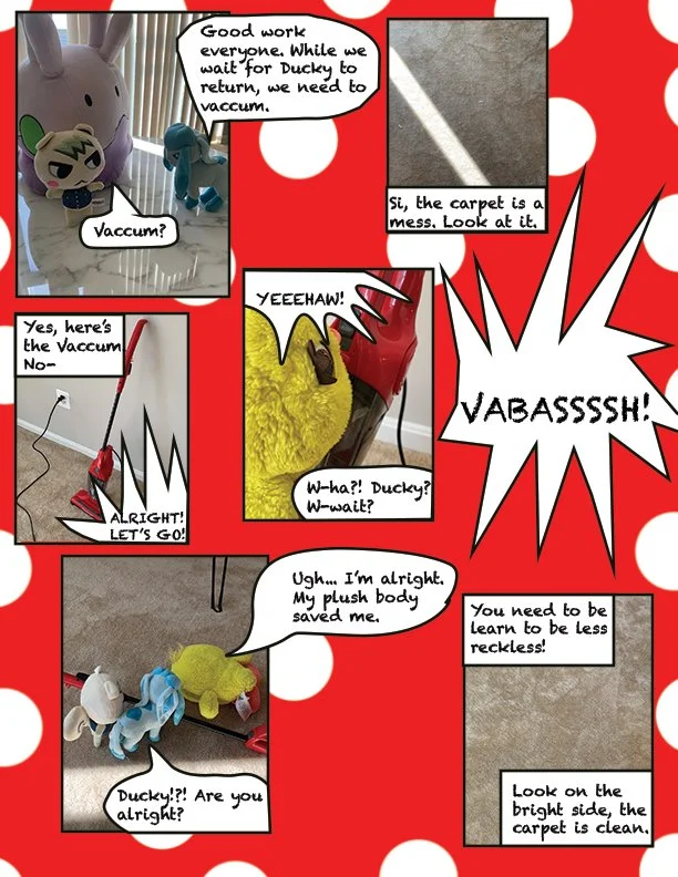 A seven- page photo comic I made featuring my stuffed animals. The story, layouts, and all the photography shots were designed by myself.